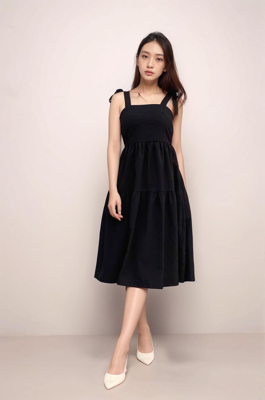 AMELIA TIE RIBBON TIERED MIDI DRESS
